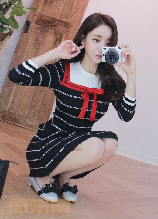 孙允珠每日一珠横条裙